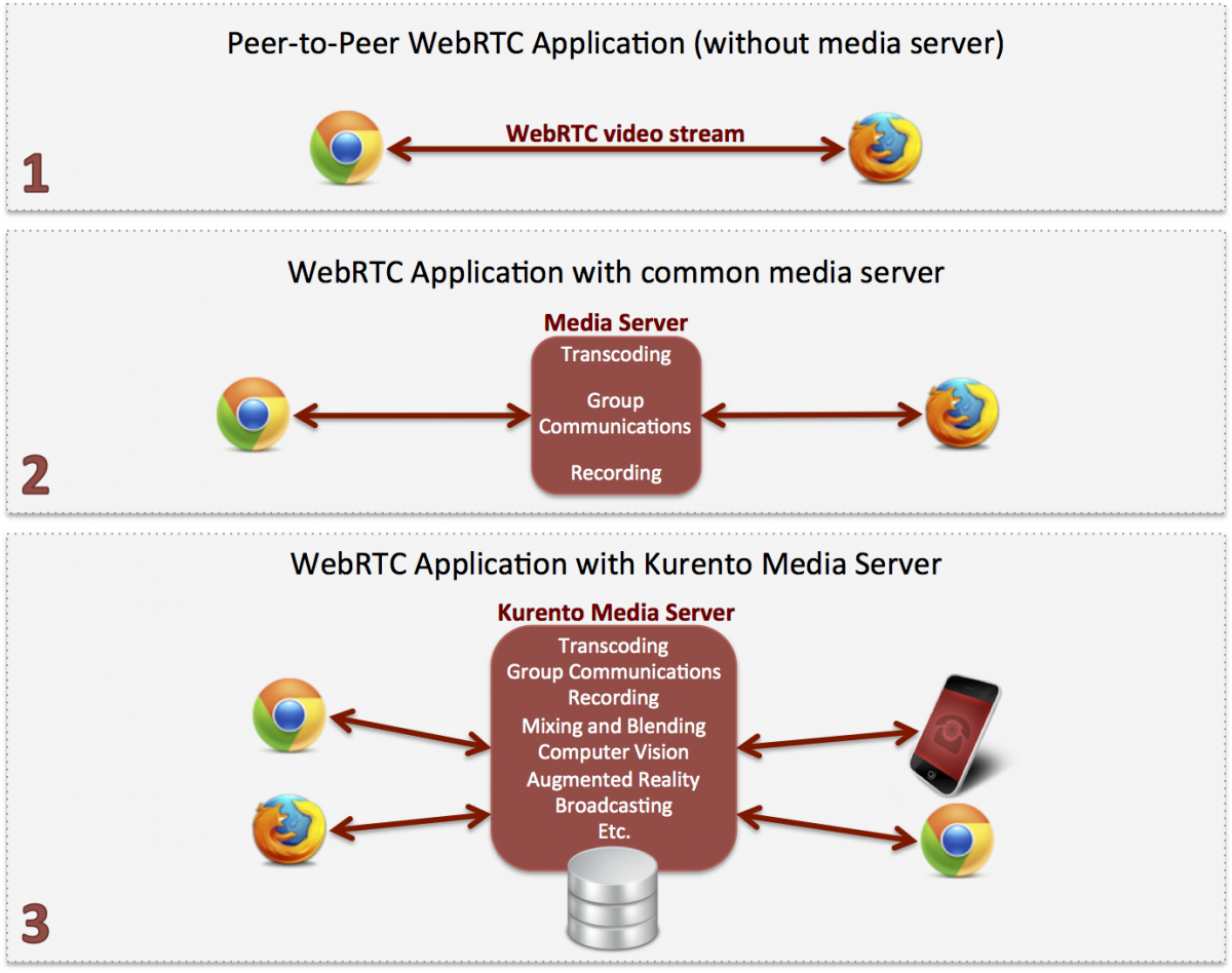 If you are one of such developers that just want to have things done, Kurento may be of your interest. We want developers to feel that multimedia and real-time communications are just another API as simple and as pluggable as the ones used for other purposes such as accessing databases, executing Web Services, parsing JSON, etc.